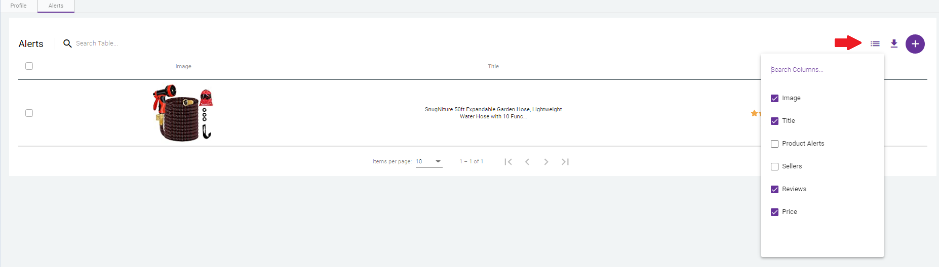 - Columns - By default, Image Title, Reviews, and Price. However, you can choose which columns to include in your default view by clicking the icon in the top-right corner.